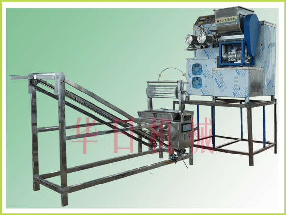 改进型米粉、米线专用机,装有自动温空装置,整个生产过程设备均在恒温状态下运行,生产时大米不需粉碎磨面,只要将大米浸泡洗净投入机器中即可生产出产品,自动化程度高,操作简单,l人即可生产,自动加料、一次自熟成型。可生产米粉、米线、桂林米粉、过桥米线、年糕、糍粑等产品。各种形状都可生产(圆、扁),加工食品外表光滑,厚薄、宽窄、粗细均匀可调,筋软适度,口感柔软、味道纯正。